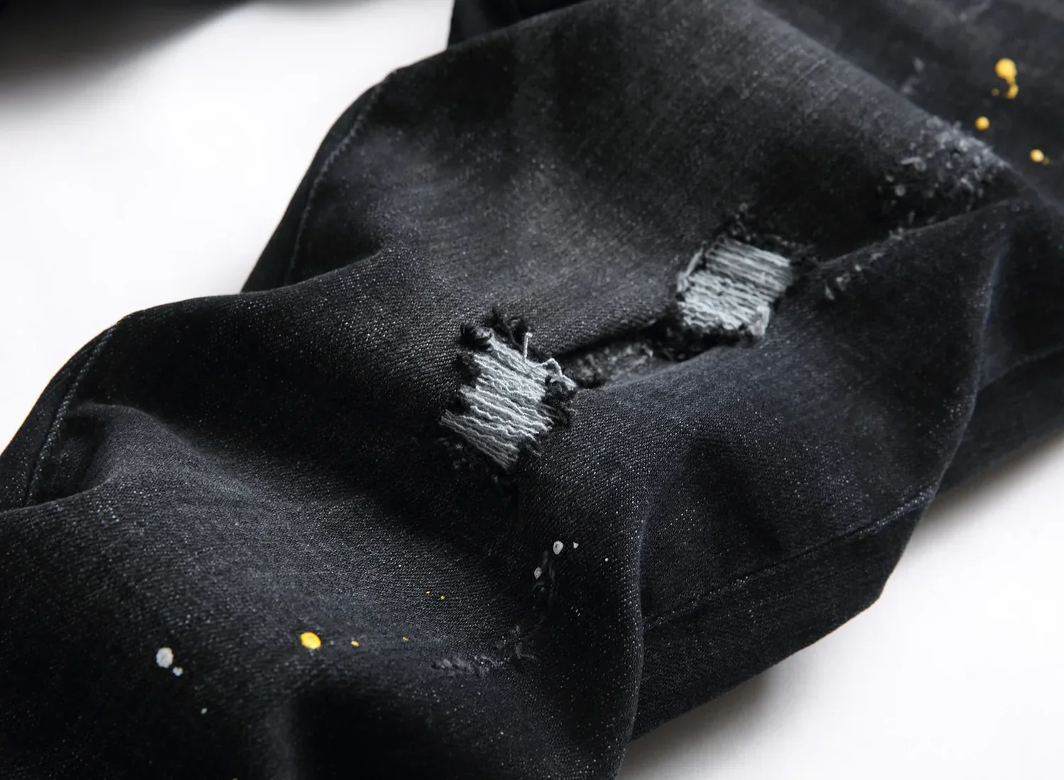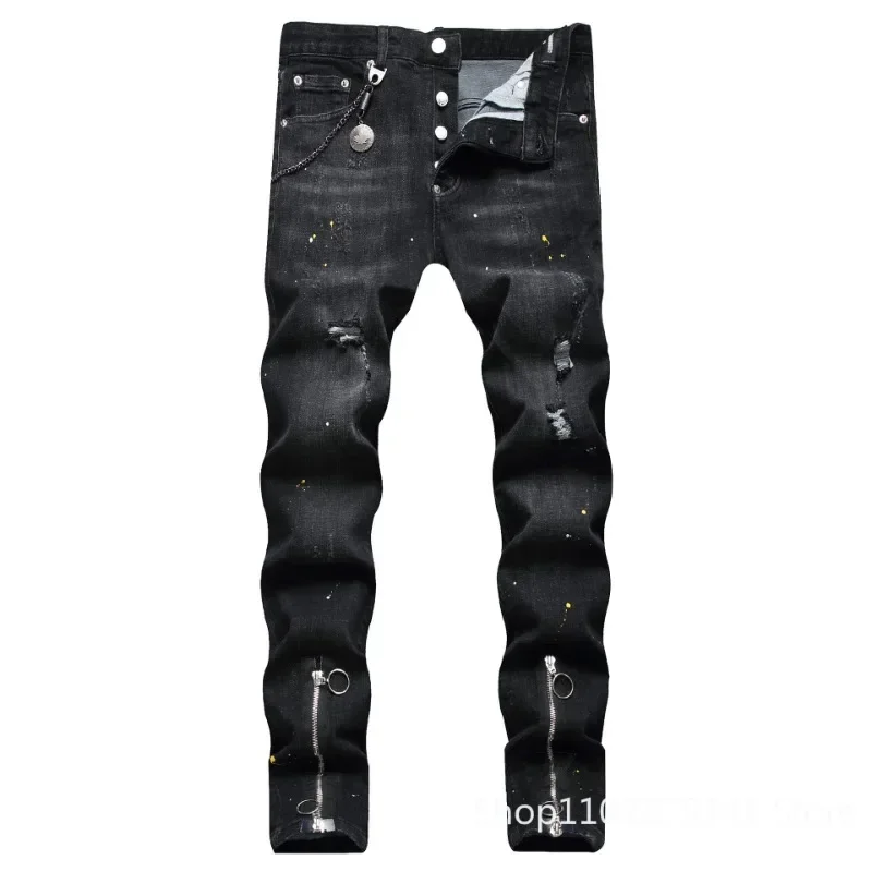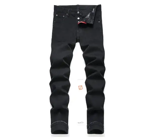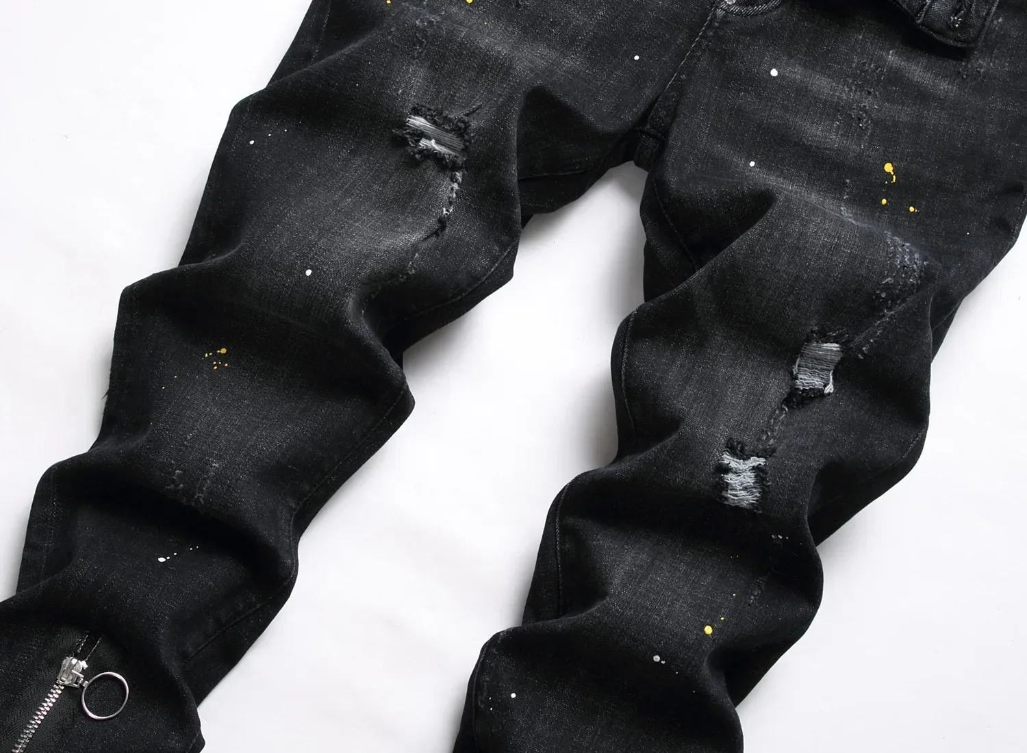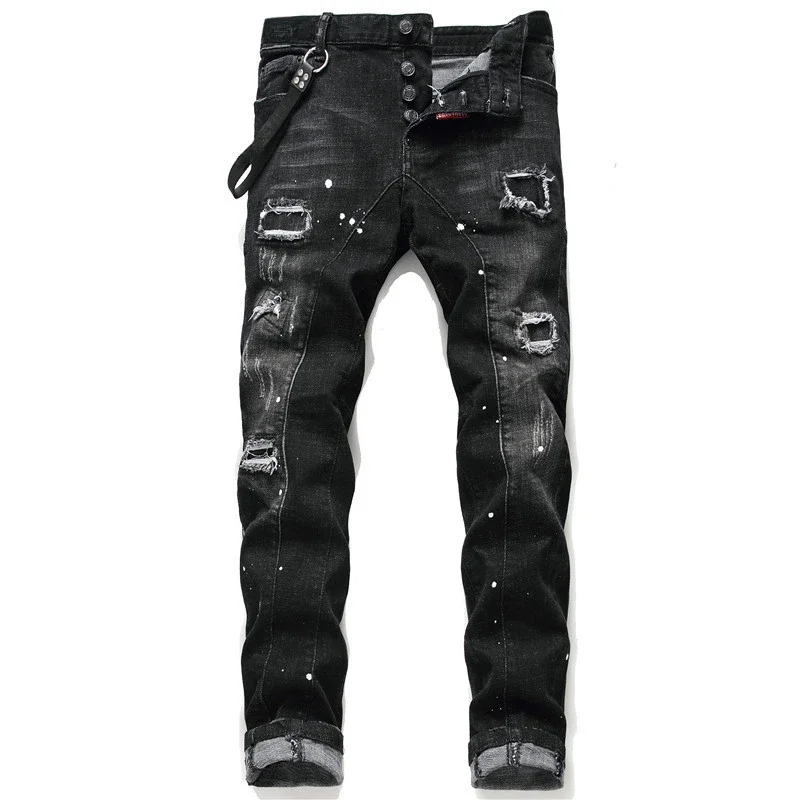 Dark Ripped Denim Men Black Ripped Denim Jeans talian High Street Style Denim Pants High Quality Male Slim Fit Denim Trousers Size 38