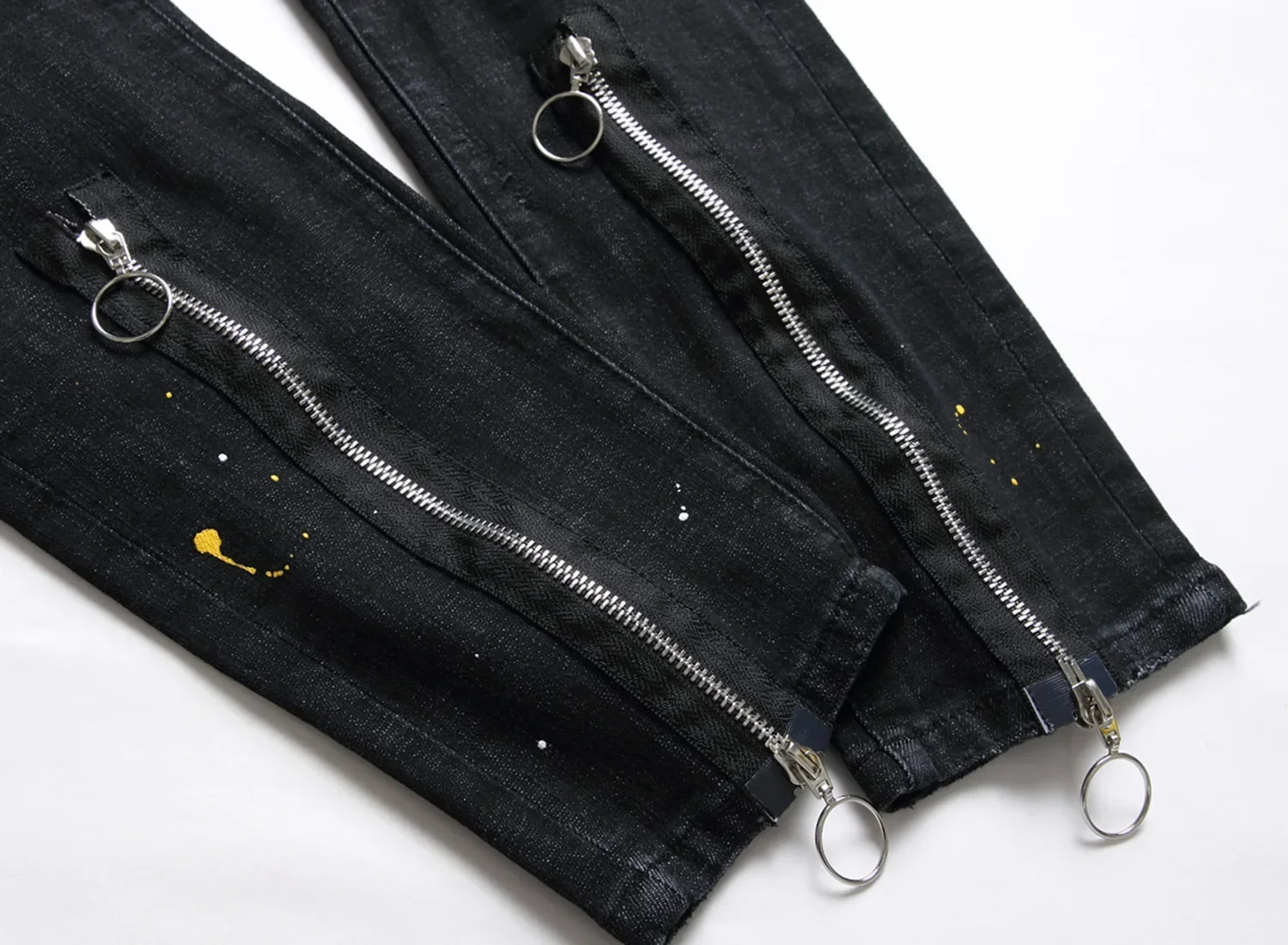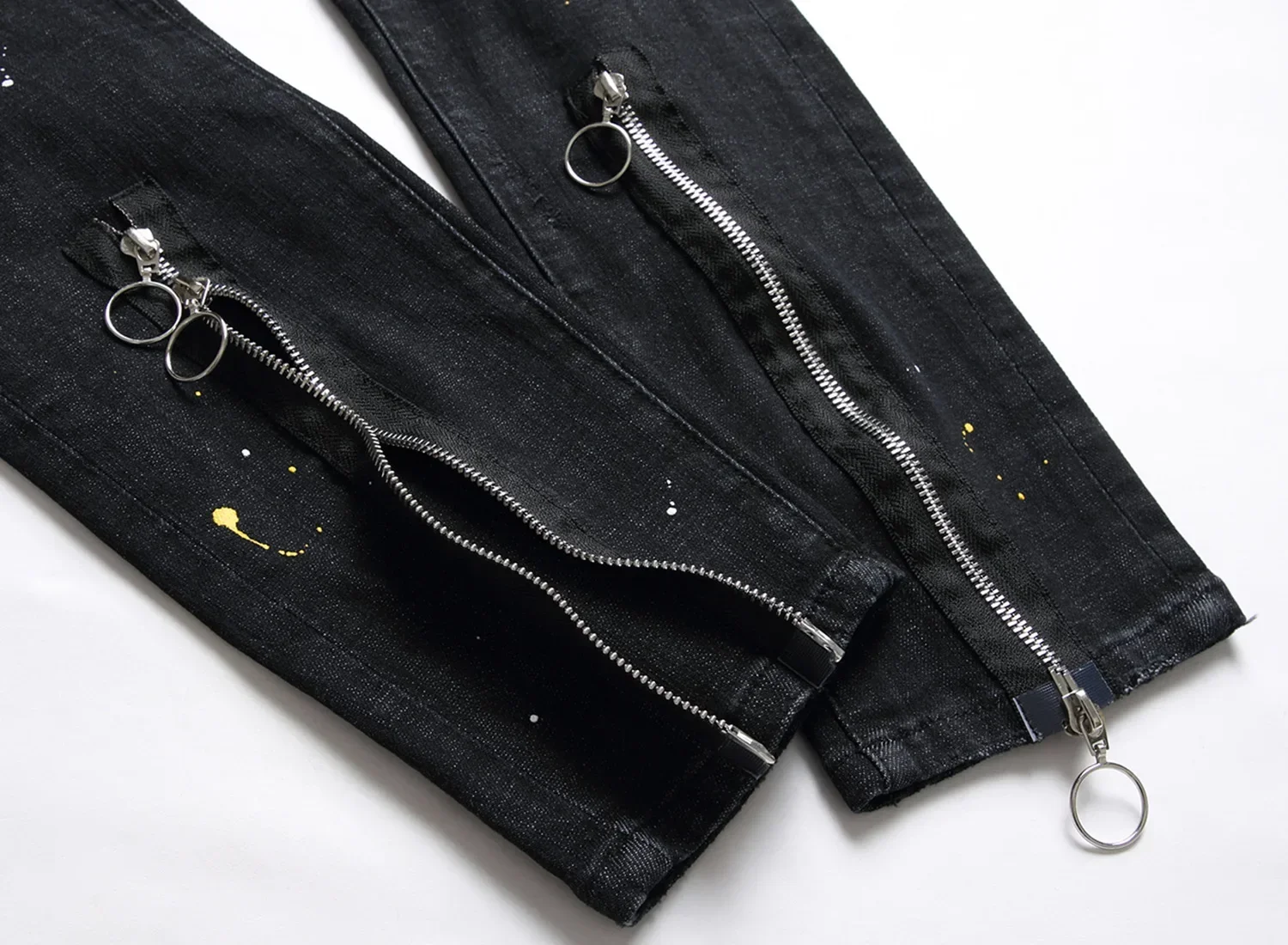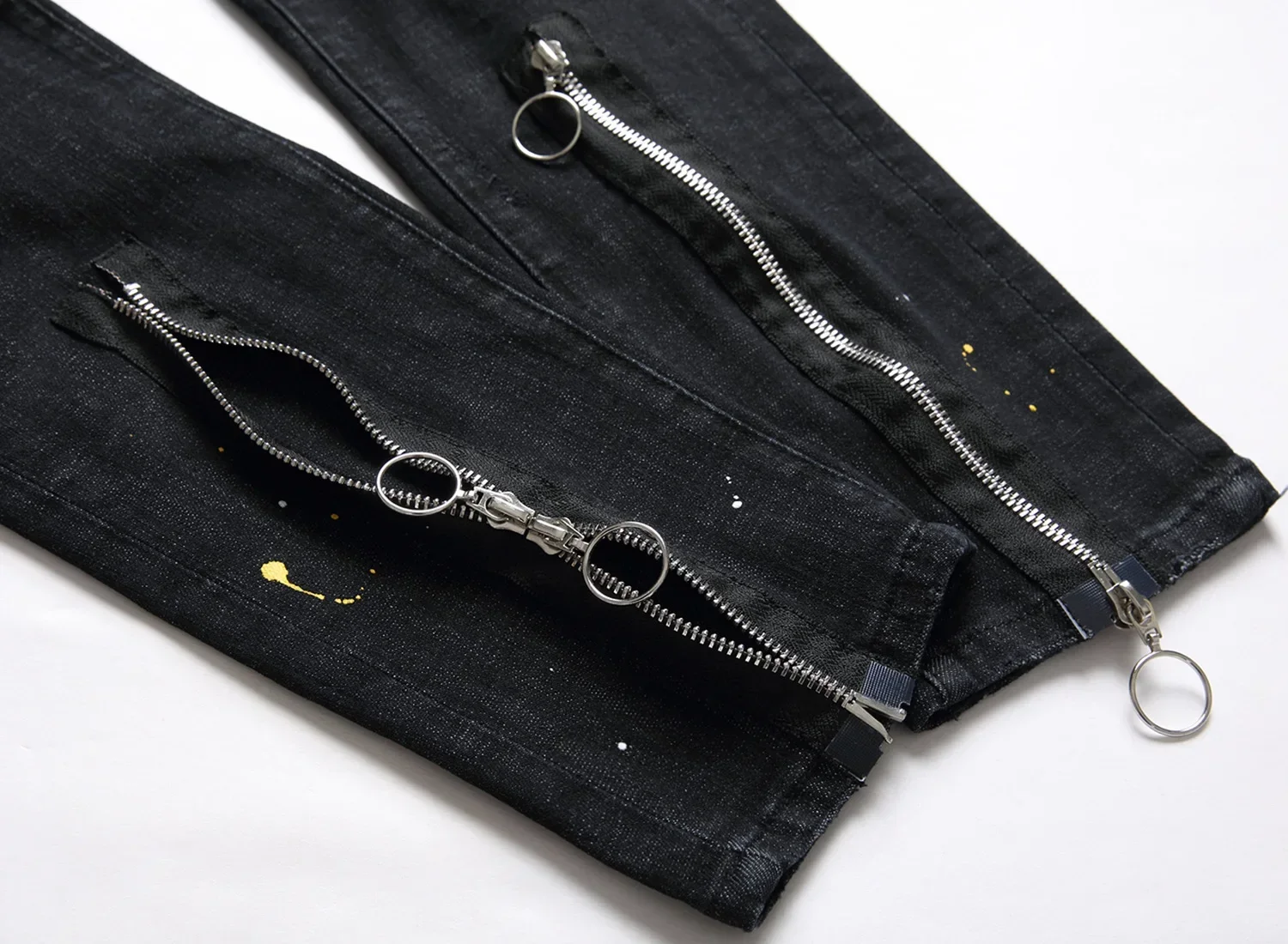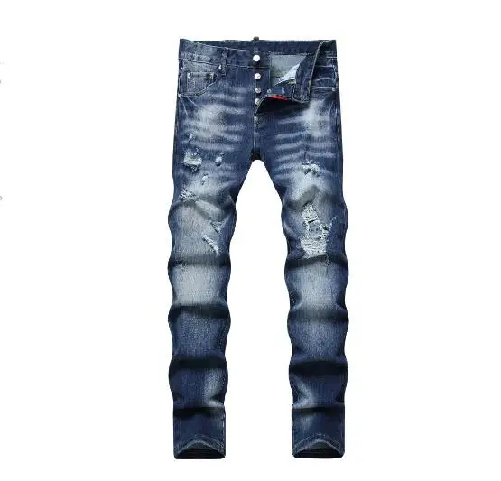 Dark Ripped Denim Men Black Ripped Denim Jeans talian High Street Style Denim Pants High Quality Male Slim Fit Denim Trousers Size 38